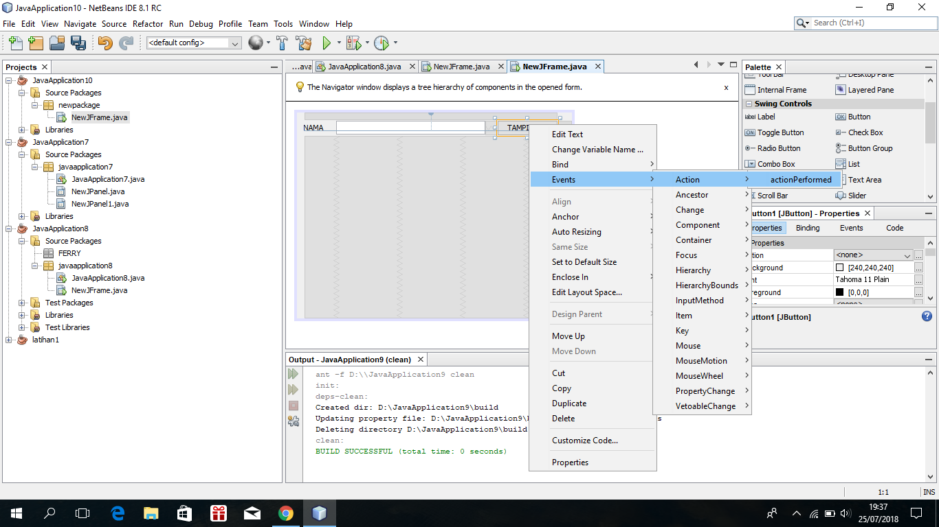 12.kemudian dijalankan dengan klik kanan new Jframe From kemudian run filr